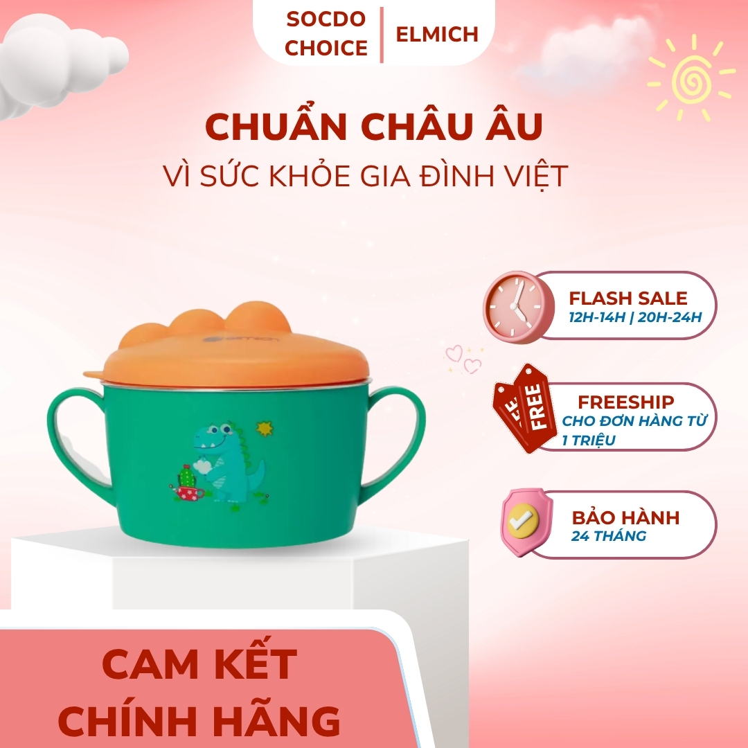 Bát ăn cho trẻ em khủng long inox 316 Elmich Babycare EL-0008KL