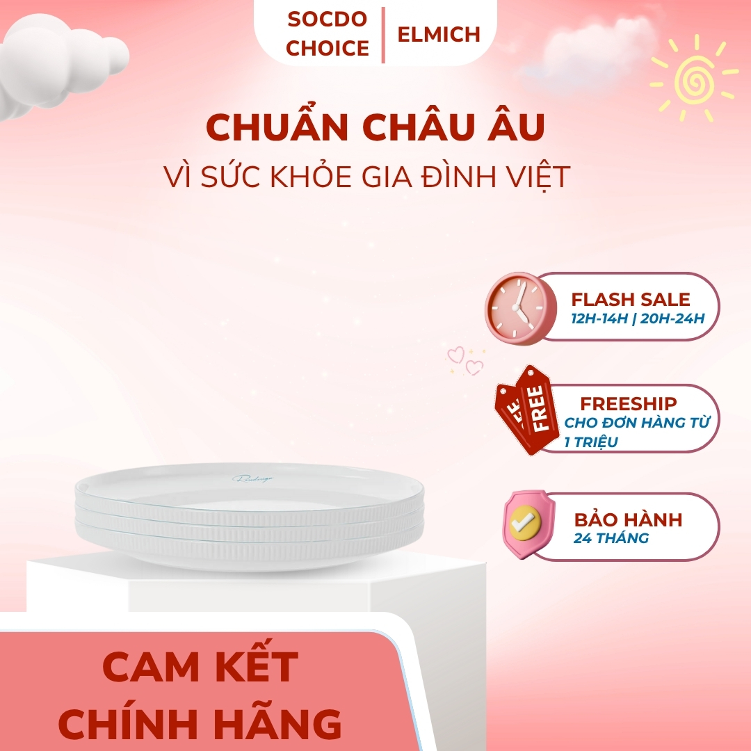 Bộ đĩa được sản xuất từ sứ cao cấp nung ở nhiệt độ cao, giúp bề mặt nhẵn mịn, không rạn nứt, không bám màu và kháng khuẩn tốt. Sứ Elmich không chứa chì, không cadmium, tuyệt đối an toàn cho sức khỏe người dùng, kể cả khi sử dụng trong lò vi sóng hoặc máy rửa chén.