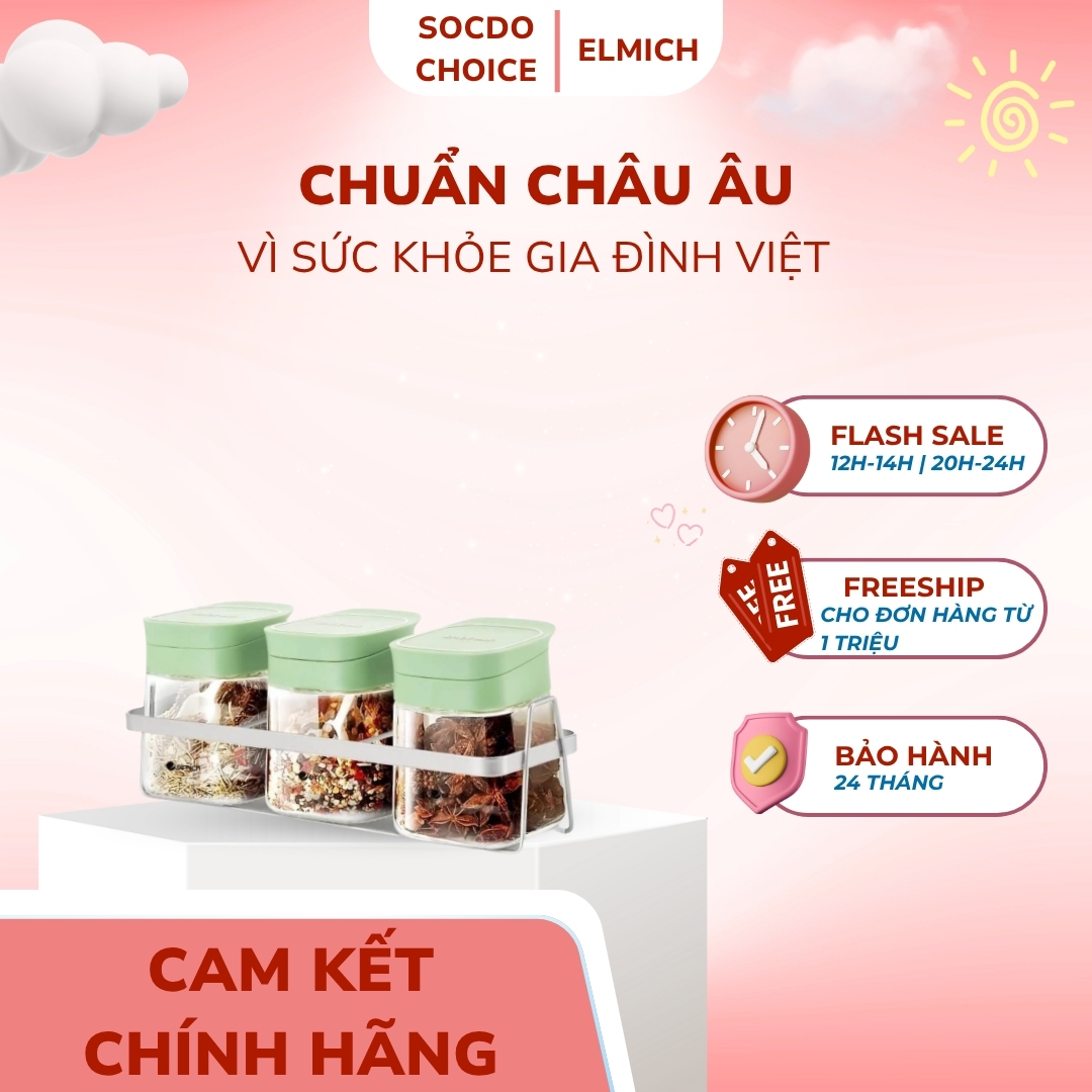 Bộ hộp đựng gia vị thủy tinh 3 món Elmich EL8427 220ml – Gọn gàng nhà bếp, tiện nghi nấu nướng