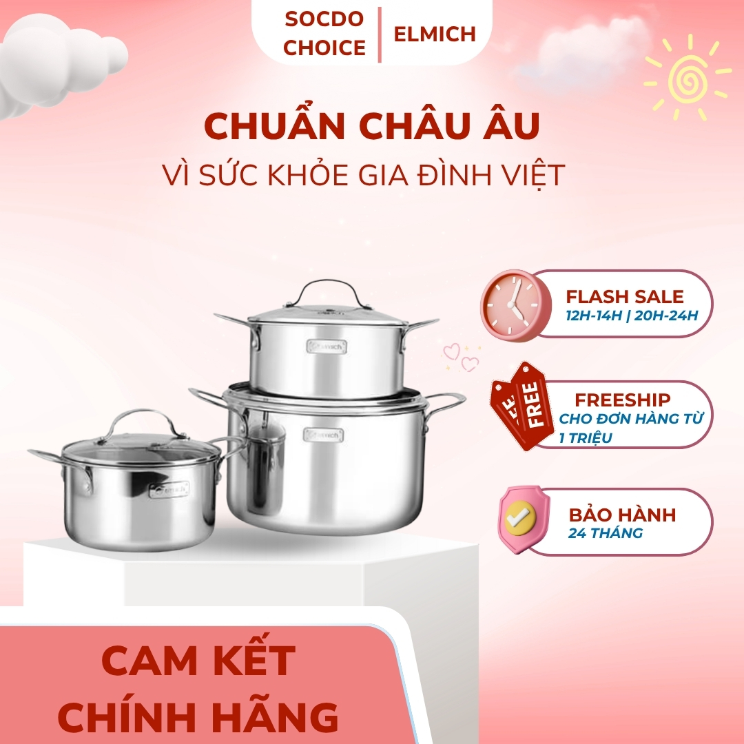Bộ nồi inox 3 lớp đáy liền Elmich 2103OL size 18, 20, 26cm nổi bật với các đặc điểm sau: