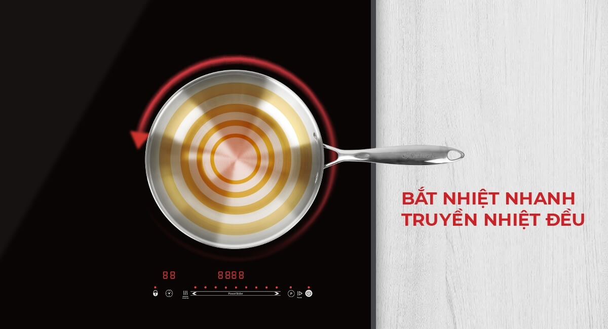 Đáy từ toàn phần dùng được trên mọi loại bếp, kể cả bếp từ.